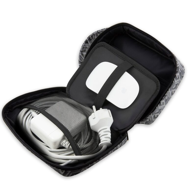Uvnitř brašny se nachází kapsy přesně navržené pro uložení nabíječky, PowerBanky nebo kabelů. Velkým bonusem této brašny je boční USB-A výstup, kde pomocí vestavěného kabelu uvnitř brašny připojíte PowerBanku a můžete z venku v pohodě nabíjet svůj mobilní telefon.