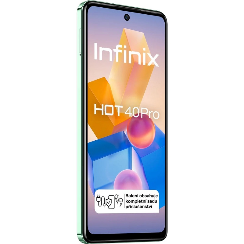 Infinix Hot 40 PRO má obří 6,78“ IPS displej se 120Hz obnovovací frekvencí, výkonný procesor MediaTek Helio G99, trojitý zadní fotoaparát o rozlišení 108 + 2 + 0,08 Mpx a výkonnou baterii o kapacitě 5 000 mAh s podporou rychlého 33W nabíjení.