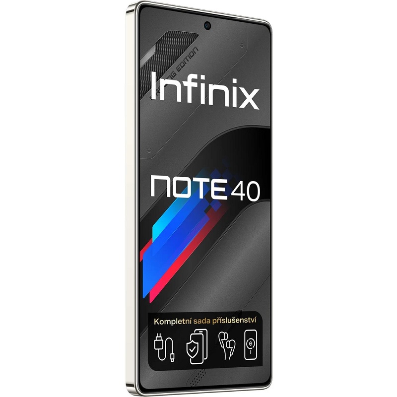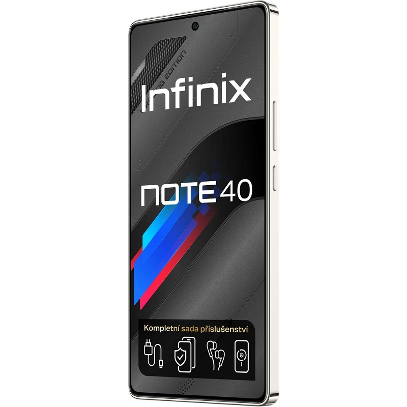 Chytrý mobilní telefon Infinix Note 40 přichází s obřím 120Hz bezrámečkovým 6.78“ AMOLED displejem, 108Mpx zadním fotoaparátem, s rychlým procesorem MediaTek Helio G99 Ultimate a s vysokokapacitní 5000mAh baterií s podporou rychlého 45W nabíjení a 20W bezdrátového nabíjení.