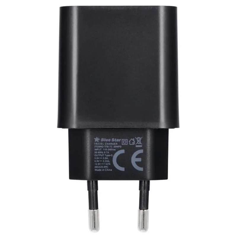 Nabíječka Blue Star USB-C PD 20W QC 4.0 + Lightning kabel pro iPhone 12,13,14 PRO MAX černá