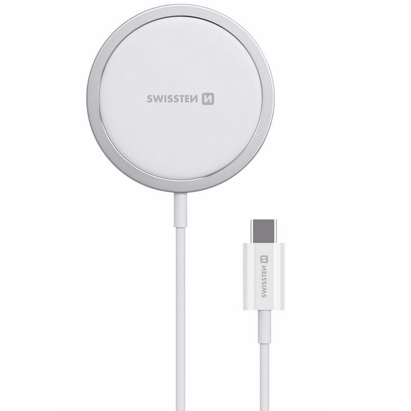Bezdrátová nabíječka SWISSTEN MagStick určená pro dobíjení Apple iPhone 12 a novějších, které podporují nabíjení MagSafe, s maximálním nabíjecím výkonem 15 W.