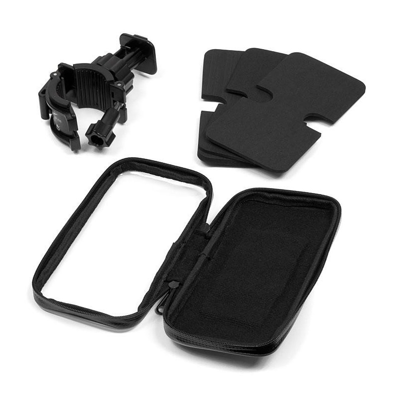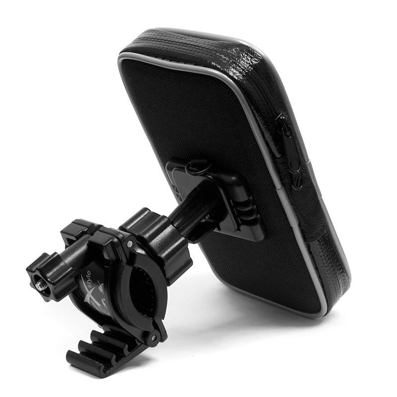 Kvalitní univerzální držák s vodotěsným pouzdrem určený na řidítka jízdního kola, koloběžky, motorky nebo čtyřkolky.